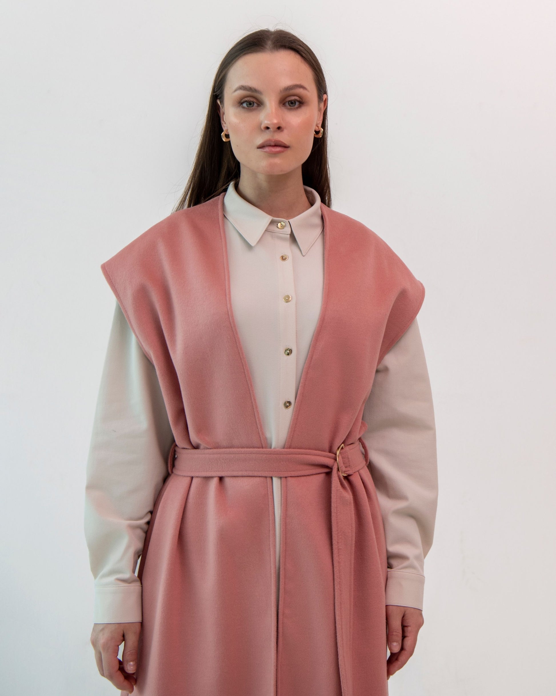 This maxi vest cardigan offers coat-like warmth in a sleeveless design. Perfect for layering over dresses or separates, wear it open for casual charm or belted for a sleek, elegant look.