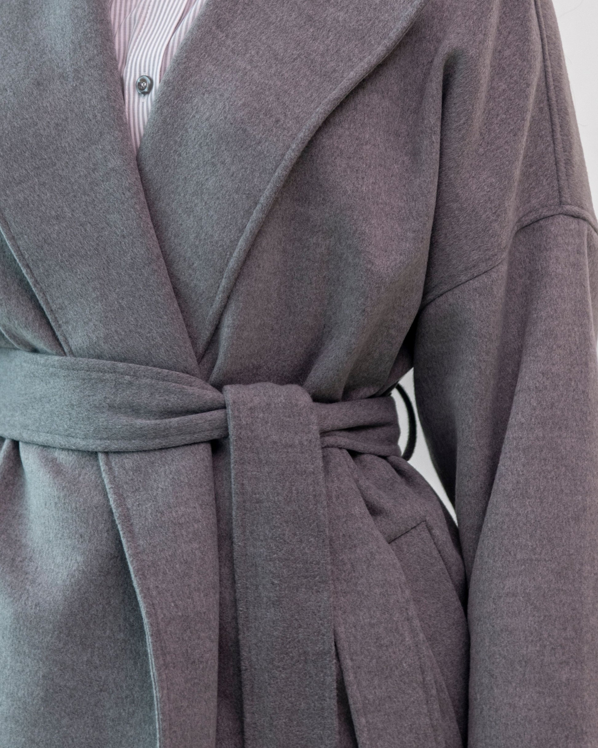 A warm, oversized grey maxi coat that combines style and comfort for the perfect winter layering piece.
