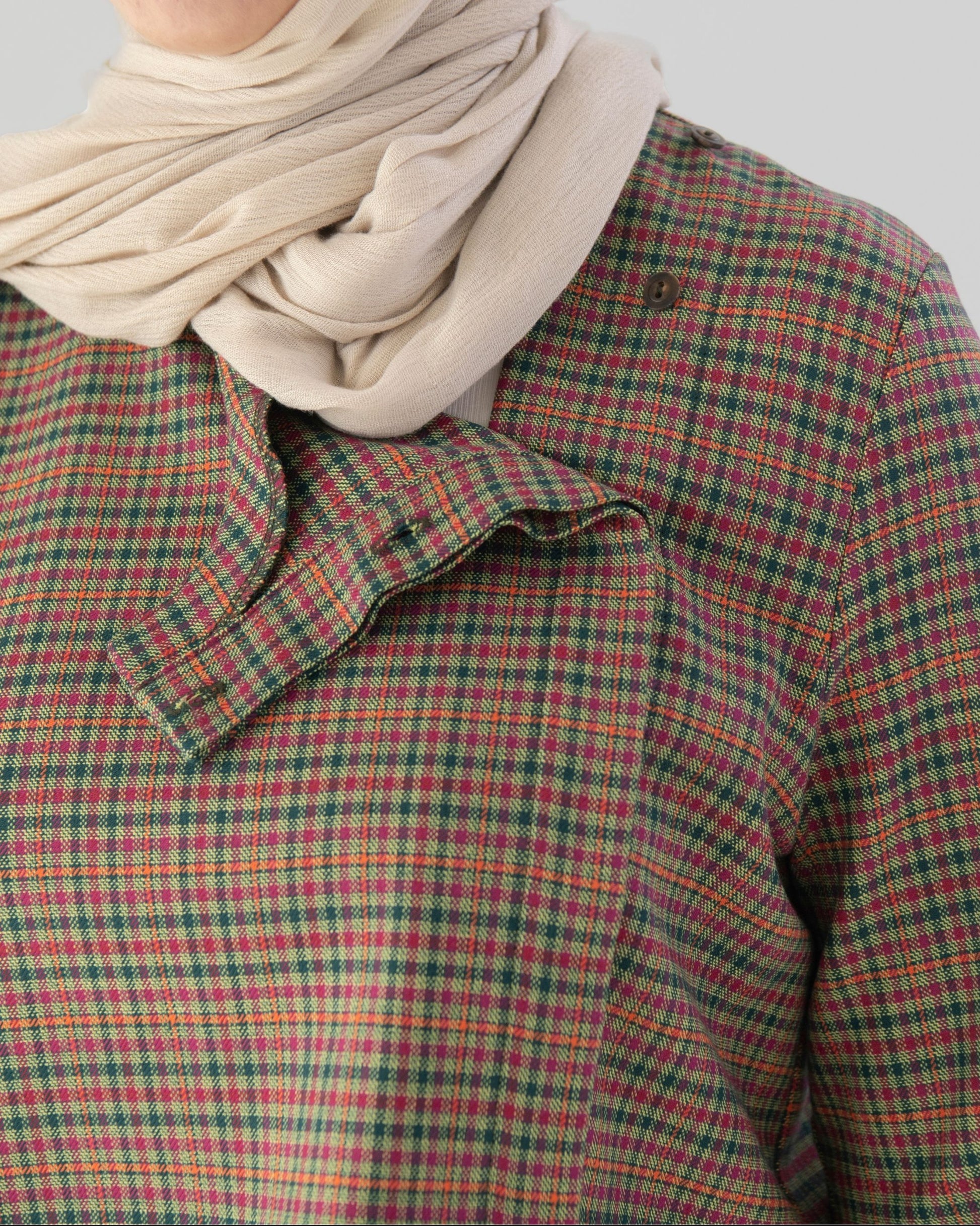 A vintage inspired plaid crop top with hidden side buttons, that can be styled with skirts and pants alike.